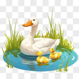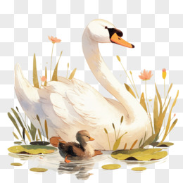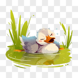 卡通插画风丑小鸭和白天鹅绘本故事免抠元素