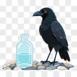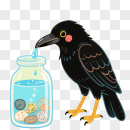 手绘插画绘本故事乌鸦喝水免抠元素
