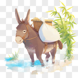卡通插画风小驴过河绘本故事免抠元素