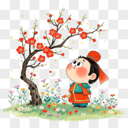 卡通插画风格绘本故事夸父追日免抠元素