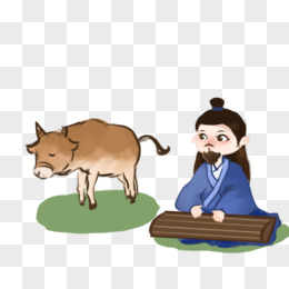 卡通手绘对牛弹琴成语故事场景元素