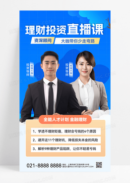 蓝色基金投资理财直播课基金投资金融股市金融理财手机海报