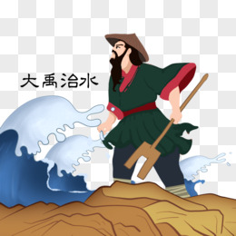 中国神话故事人物大禹治水插画
