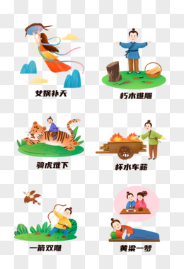 一组手绘卡通成语故事集合免抠元素