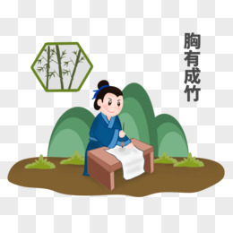 卡通古代成语胸有成竹插画元素