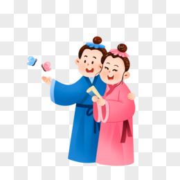 手绘卡通Q版梁山伯与祝英台免抠元素