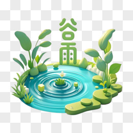 3D立体池塘涟漪谷雨节气免抠元素