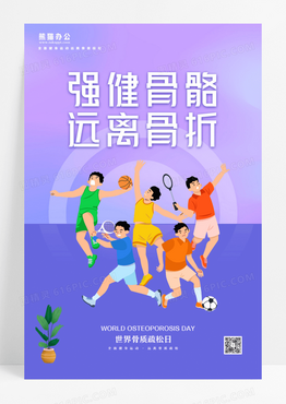 紫色卡通简约清新大气强健骨骼远离骨折海报设计