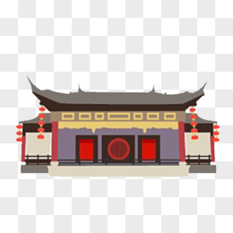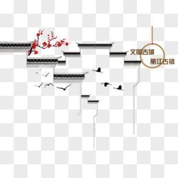 手绘水墨徽派建筑插画元素