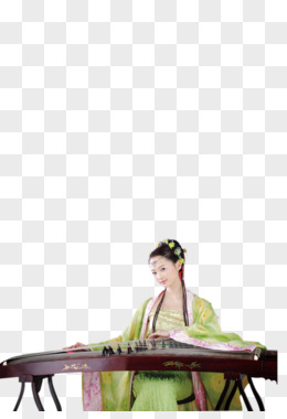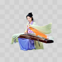 手绘少女弹古筝免抠元素