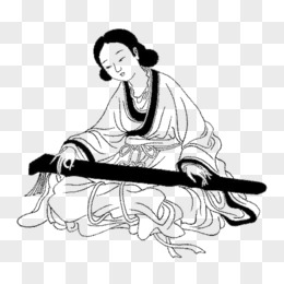 卡通古代弹古筝的女子元素