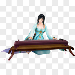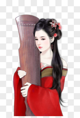 手绘旗袍女生弹古筝免抠元素