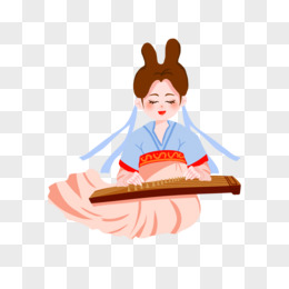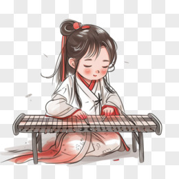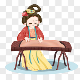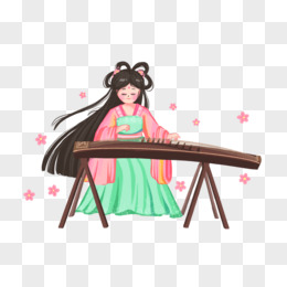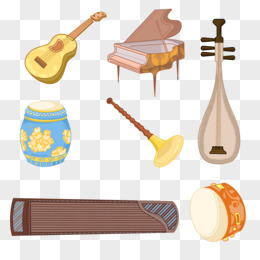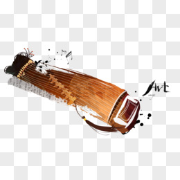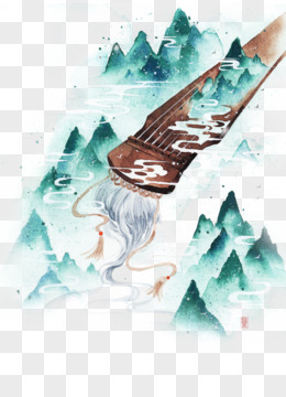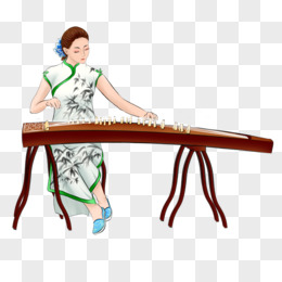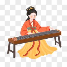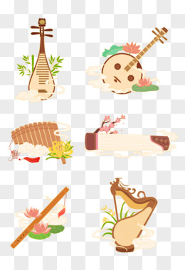 一组手绘中式国潮风传统乐器套图之古筝免抠元素