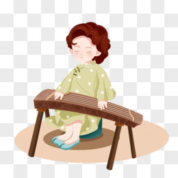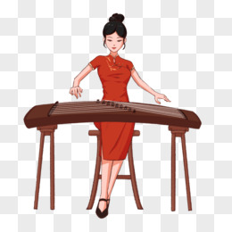 手绘旗袍女生弹古筝免抠元素