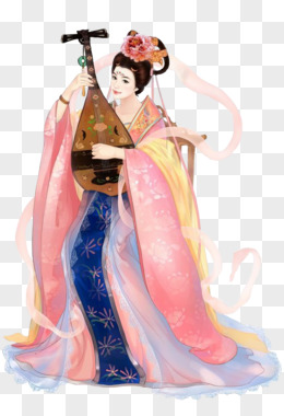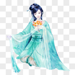 手绘可爱喜庆女孩拿着金鱼灯放烟花元素