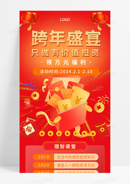红色简约风跨年盛宴投资理财活动H5创意红色红包礼金手机长图