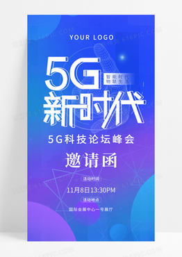 蓝色5G时代光速科技论坛会邀请函UI手机海报蓝色渐变5g科技会议邀请函h5界面