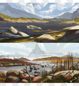 卡通溪涧海报背景