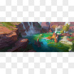 卡通山间峡谷海报背景