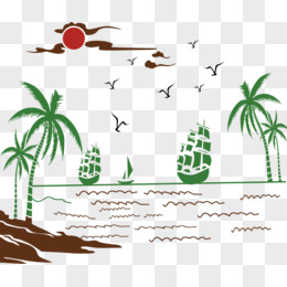 褐色板绘夏天卡通清新海边饮料椰子元素免抠