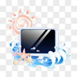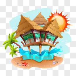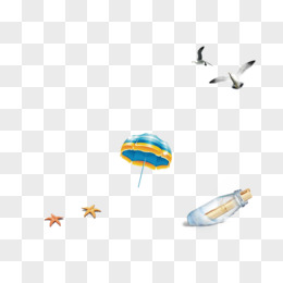 夏天之手绘可爱卡通的女孩在沙滩上吃西瓜