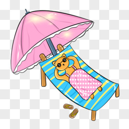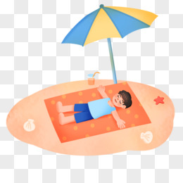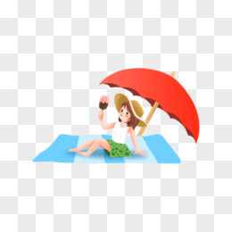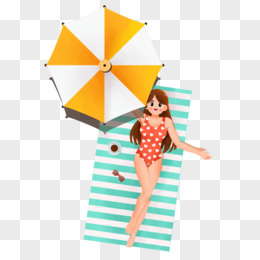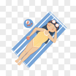 手绘卡通沙滩上晒太阳的美女免抠素材