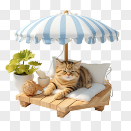 红色C4D卡通夏日海滩遮阳伞沙滩椅3d元素
