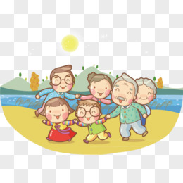 插画海边游玩的一家人