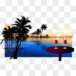 手绘海滩风景沙滩素材