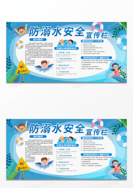蓝色简约卡通防溺水安全宣传栏展板防溺水宣传栏