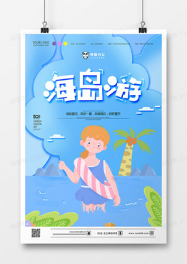手绘卡通背景海岛游海报
