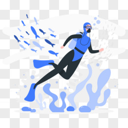 扁平插画风海底潜水场景元素