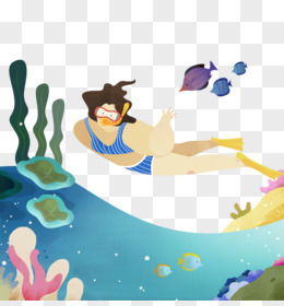 海底游泳旅行海岛游插画元素