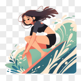 女生冲浪简约插画免抠元素