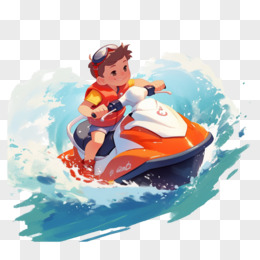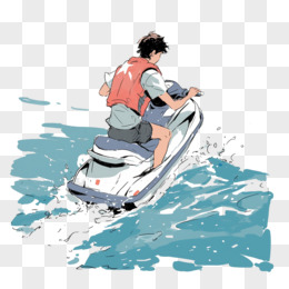 男生骑海上摩托插画免抠元素
