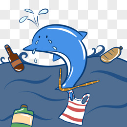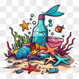 卡通海洋遭被塑料垃圾和污水污染的场景元素