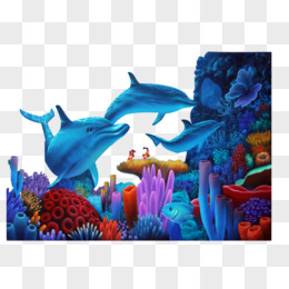 卡通紫色调潜水的女孩和海底生物一起玩耍插画素材