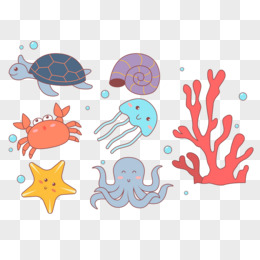 可爱彩色海洋动物免抠元素