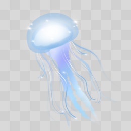 手绘发光蓝色水母元素
