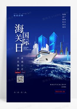 深蓝紫色海关日国际海关日国际贸易宣传海报