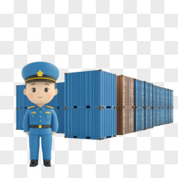 3D插画一个穿蓝色制服的海关工作人员站在一堆集装箱前免抠元素