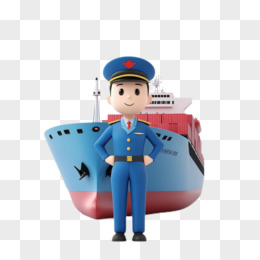 3D插画一个穿蓝色制服的海关工作人员站在装满集装箱的货轮前免抠元素