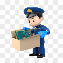 3D插画一个穿蓝色制服的海关工作人员正在检查纸箱里的电路板免抠元素
