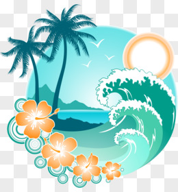 和风扇子海浪手绘小清新蝴蝶结扇子装饰元素