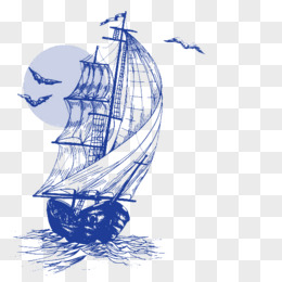 手绘航海船