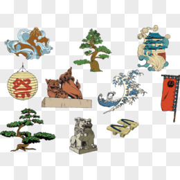 平面插画海边的灯塔和海上航行的装满集装箱的轮船免抠元素
