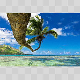 海滩椰树蓝天白云