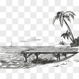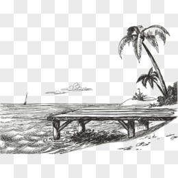手绘海岸线沙滩海滩素材