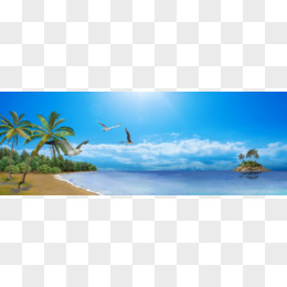 手绘海滩风景沙滩素材