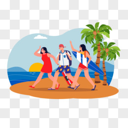手绘学生毕业海滩结伴旅行免抠元素